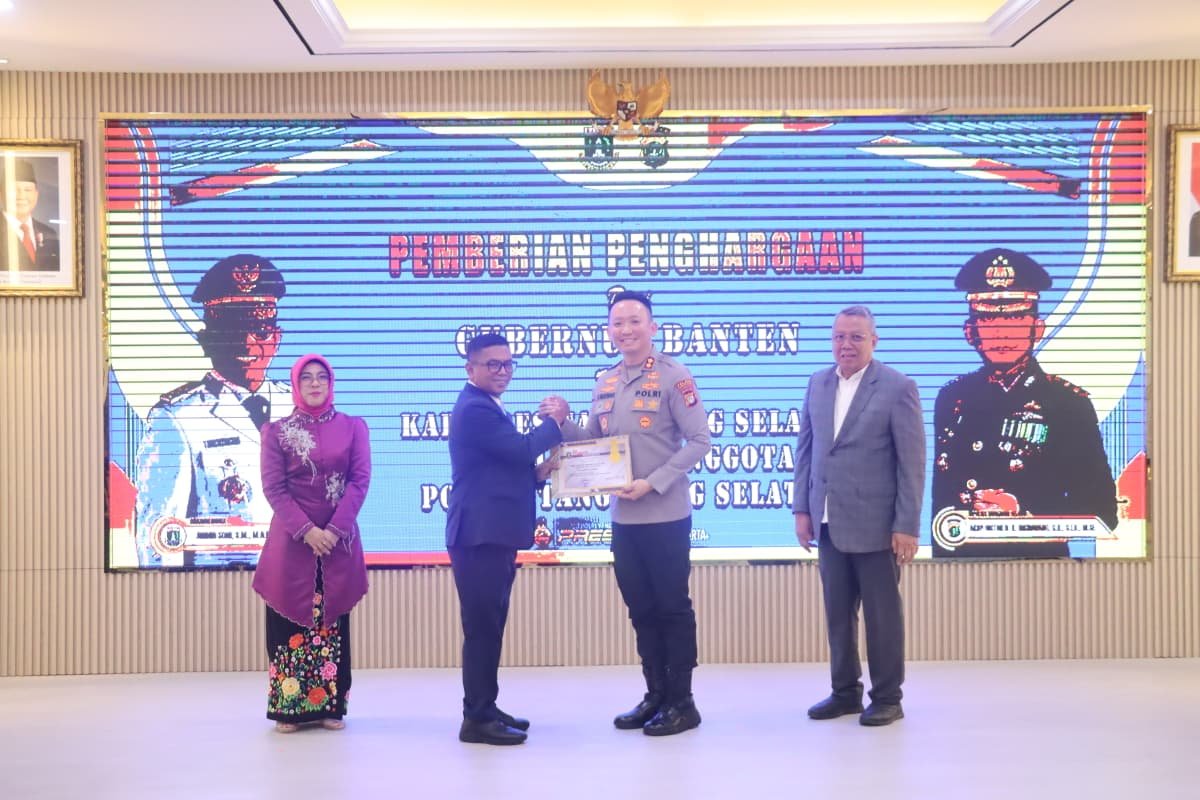 Penghargaan diberikan langsung oleh Gubernur Banten Andra Soni, S.M., M.A.P. kepada Kapolres Tangsel AKBP Victor D.H. Inkiriwang, S.H., S.I.K., M.Si. bertempat di Aula Guyub Lt.4 Polres Tangerang Selatan.