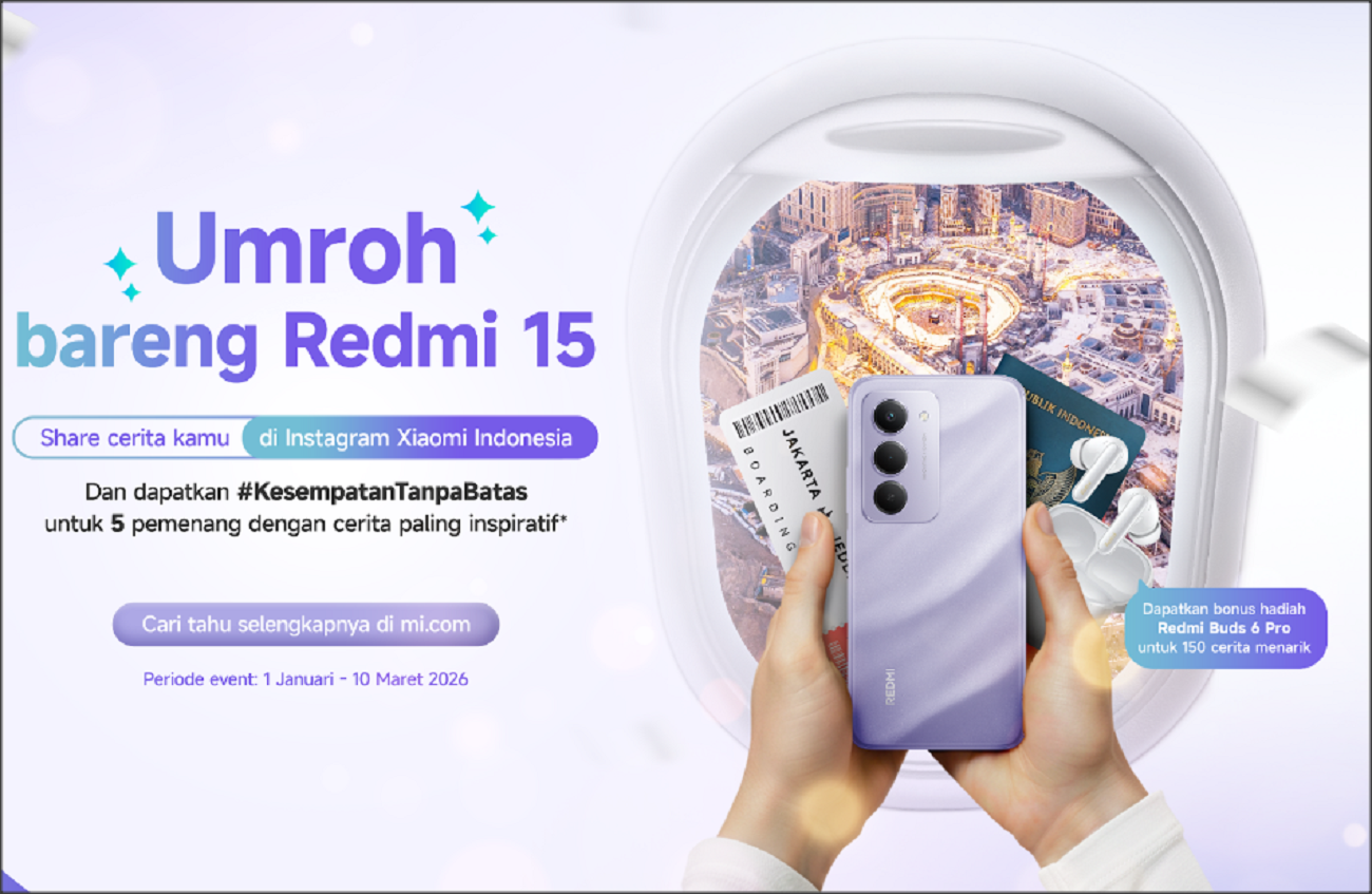 Bantentoday – Xiaomi Indonesia  menghadirkan program inspiratif bagi generasi muda melalui REDMI 15 Umrah Competition bertajuk “Raih Kesempatan Tanpa Batas”. Kompetisi ini menjadi wujud komitmen Xiaomi dalam mendukung semangat anak muda yang selalu always ready menghadapi peluang, sekaligus mendorong mereka mewujudkan mimpi besar, termasuk menghadiahkan perjalanan ibadah Umrah untuk orang terkasih.